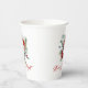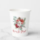 Modern watercolor flowers and red apples, Christmas party paper cups with custom red typography. Elegant, joyful holiday vibe.