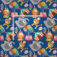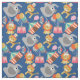 Joyful Circus fabric, bright, cheery, colourful, fun! Features a royal blue background with striped big top tent, grey elephants, lions wearing party hats, tigers, cotton candy, masks, and big bunches of balloons!