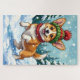 Joyful Corgi Dog Bouncing in Snow with Pom Pom Jigsaw Puzzle