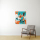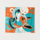Digital illustration featuring a dog's portrait, where the character's expressive eyes and joyful demeanor are highlighted against an abstract backdrop of swirling orange and aqua hues. The playful color palette exudes warmth and cheer, creating an uplifting atmosphere that draws the viewer in. The dog's fur is textured with splashes of these colors, blending harmoniously with the background, evoking a sense of whimsy and happiness.