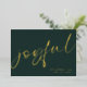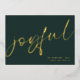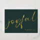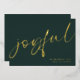 Joyful Elegant Calligraphy Name Christmas Green A touch of real foil for the typography on the front in either gold, silver or rose gold for this minimalist design. Joyful is in a stylish set script, and easily personalise with your name and greeting on the back.