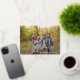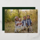 A simple elegant holiday photo card featuring a sweeping oversized headline "joyful" in real gold foil modern calligraphy style font over your favourite photo. Personalise further with your sign off. The backer has a dark green watercolor wash.