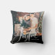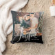 Joyful | Elegant Script and Photo Christmas Black Cushion