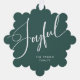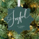 These elegant, green Christmas holiday ornament cards say "Joyful" in modern white script calligraphy.