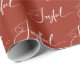 This elegant Christmas holiday wrapping paper says "Joyful" in modern white script calligraphy on a festive red colour.