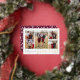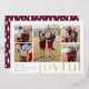 Share holiday greetings with these chic Christmas photo cards featuring five favourite photos in a collage layout (4 square and one portrait/vertical). "Joyful" appears along the bottom in modern gold foil lower case lettering, with your custom holiday greeting, family name, and the year aligned at the left. Cards reverse to a festive pine tree pattern.
