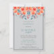A gorgeous floral bridal shower invitation featuring orange flowers, and teal greenery with red berries, and a serene light grey background. Please contact me if you would like help with customising this invitation.