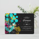 A dramatic invitation with whimsical flowers in electric hues of teal, fuchsia, gold and white against a black backdrop. (<a href="https://www.vecteezy.com">Free Vector Art by vecteezy.com</a>). <br/><br/>The card is easy to customise with your wording, font, font colour and choice of six paper types.<br/><br/>Not exactly what you're looking for? All our products can be custom designed to meet your needs at no extra charge.<br/><br/>Simply contact us at askcottonlamb@gmail.com<br/><br/>Coordinating products available: