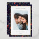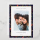 Share holiday greetings with these photo Christmas cards featuring your favourite photo set on a background of holiday flowers and botanicals in festive red and green trimmed with gold foil. An editable message area lets you customise your holiday greeting in modern lettering. Add your family name or names beneath.