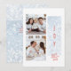 Celebrate the season with this "Joy" family photo holiday card, featuring a clean, minimalist design that highlights two photo slots for showcasing your favourite family moments. A snowy blue watercolor painted background with the word "JOY" in bold red typography adds a festive touch. The elegant script at the bottom personalises the card with your family name, creating a warm, joyful message for the holidays. Perfect for Christmas or holiday greetings, this card combines simplicity and charm, making it an ideal choice for sharing seasonal joy with loved ones.