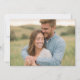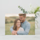 This wedding invitation features a warm and intimate design with two individuals embracing in a serene outdoor setting, surrounded by rolling hills and grassy fields. The color palette includes soft earth tones like greens, yellows, and browns, creating a peaceful and harmonious atmosphere. Captured in a candid, naturalistic style, the photograph emphasizes genuine emotion and connection, making it perfect for couples looking to convey love and tranquility on their special day. The overall mood is joyful and inviting, ideal for celebrating a heartfelt moment in life.