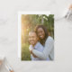 This wedding invitation features a warm, inviting design with two individuals embracing in an outdoor setting surrounded by lush greenery and sunlight. The color palette includes soft blues and grays that harmonize beautifully with the natural backdrop, creating a serene and joyful atmosphere. Captured in a realistic style, this photograph conveys genuine affection and happiness, making it perfect for celebrating love and companionship on your special day.