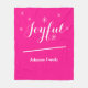 Joyful Holiday Gift Script Modern Chic Hot Pink Fleece Blanket. Created by artist RjFxx *All rights reserved. #PersonalizedFleeceBlanket #HolidayGift #ZazzleMade