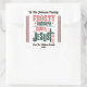 A colourful square sticker cheerfully adorns a beautifully wrapped holiday gift. The design features festive elements and playful typography, celebrating the spirit of Christmas with cheerful messages and decorations. Perfect for holiday gatherings.