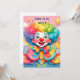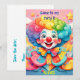 A vibrant cartoon clown with a contagious smile, surrounded by a whimsical world of colourful shapes, stars and clouds. The clown's curly hair and outfit are a kaleidoscope of pastel colours, matching the playful atmosphere. The image excludes happiness and carefree joy, perfect for bringing a smile to anyone's face.