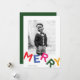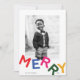 Playful and bold, large capital letters form the word "MERRY" below the photo. Each letter is infused with a different bright colour, creating a visually striking display that radiates with festive cheer. The colourful letters dance joyfully, inviting recipients to embrace the merriment and excitement of the holiday season.
