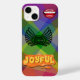 Express your vibrant personality with this colourful "Joyful" iPhone case design. Featuring a bold red smile, dynamic wing emblem, and playful typography, all set against a vivid geometric background, this case radiates positivity and style. Perfect for anyone who loves to carry cheerful vibes and artistic flair wherever they go, while keeping their phone protected in a unique way.