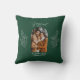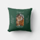 Your family Christmas photo will appear in a stylish and modern arch shape on this festive pillow. The word "Joyful" appears in script typography above the arch photo template. Below the photo, there's a template for your family name and the year. Wintery branches beside the photo add a festive touch. The dark evergreen background decorated with fine white text and botanicals is subtle enough to make your photo stand out.