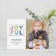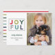 Share a sweet “JOYFUL” holiday card featuring your favorite photo—perfect for kid-and-puppy moments and cozy family memories. Modern block typography in cheerful colors keeps the design clean and playful. The front includes a “merry christmas” greeting beneath the JOYFUL headline. The back features a coordinating multicolor stripe pattern for a polished, festive finish.