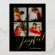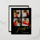 Joyful Modern Minimalist Black Gold Script Photo Foil Holiday Postcard