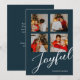 Joyful Modern Minimalist Blue Script 4 Photo Holiday Card