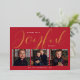 Joyful Modern Red and Gold Script Photo Collage Foil Holiday Card