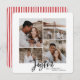 Joyful multi photo christmas card. Modern red and white holiday design. Script text with a modern edge. Hand painted striped backer. Change the packet colour to customise.