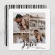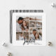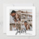 Joyful multi photo christmas card. Modern black and white holiday design. Script text with a modern edge. Hand painted striped backer. Change the packet colour to customise.