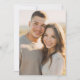 This wedding invitation features a warm, intimate portrait of two individuals in an outdoor setting, capturing a genuine moment of closeness and affection. The design utilises a neutral colour palette with beige and soft white tones, creating a serene and harmonious atmosphere. The realistic art technique emphasises natural lighting and subtle textures, enhancing the candid and joyful mood. Perfect for couples seeking a simple yet heartfelt representation of their special day, this invitation conveys warmth and connection through its authentic depiction.