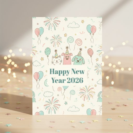 Ring in the New Year with cheerful style! Our Joyful New Year’s Eve Party 2026 collection features a playful pastel design with doodle-style fireworks, balloons, and party hats — perfect for kids and family celebrations. The colorful, festive artwork brings a fun and heartwarming touch to your holiday gathering. Personalize with your party details to create a unique and memorable for your guests. Ideal for children’s New Year parties, family get-togethers, or classroom events.