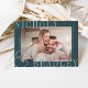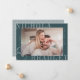 Share the news of your engagement with these elegant announcement cards featuring a horizontal or landscape oriented photo with your names aligned at the corners in classic lettering, slightly overlapping your photo and extending past the edges of the paper for a modern look. Personalize with two lines of custom text along the sides for additional details or your wedding website.