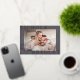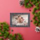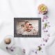 Share the news of your engagement with these elegant save the date cards featuring a horizontal or landscape orientated photo with your names aligned at the corners in classic lettering, slightly overlapping your photo and extending past the edges of the paper for a modern look. Personalise with two lines of custom text along the sides for your wedding details, with an additional text field on the back.