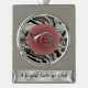 In the circular space of this ornament, a vintage drawing of a French horn is displayed upon a red gradient background surrounded by a mother-of-pearl effect frame. In the banner space below, the words "A Joyful Note in 2016" appear, easily edited to whatever is preferred. Very festive and decorative all year round, be it in the home or musician''s studio.