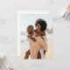 This wedding invitation features a joyful beach scene with two individuals enjoying a carefree moment by the ocean. The design showcases a soft pastel colour palette, including light pink and crisp white, set against the natural blues of the sea and sky, creating a serene yet vibrant atmosphere. Captured in a realistic style, the composition emphasises warmth and positivity, perfect for celebrating love and companionship. The layout centres on the subjects, allowing the expansive view of the sandy shore and waves to enhance the sense of freedom and tranquillity. Ideal for couples who cherish leisurely moments by the coast, this invitation conveys a mood of happiness and connection.