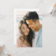 This wedding invitation features a warm, intimate photograph of two individuals smiling closely together, capturing a moment of joy and connection. The soft pastel colour palette includes light pink and blue tones that create a harmonious and gentle aesthetic. The design emphasises natural beauty with flowing hair and relaxed postures, conveying a candid and spontaneous feel typical of lifestyle photography. Perfect for couples seeking an authentic and heartfelt representation of their special day, this invitation sets a cheerful and inviting tone.