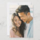 This wedding invitation features a warm, intimate photograph of two individuals in a joyful embrace, set against a softly blurred outdoor backdrop. The colour palette is gentle and natural, with soft pinks and pale blues creating a harmonious contrast. The design captures an authentic moment of affection and happiness, conveying a theme of love and companionship through its candid style. Perfect for couples seeking to share their heartfelt emotions, this invitation exudes joy and tenderness, making it ideal for celebrating a special union.