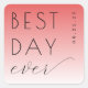 This wedding sticker features a modern and playful design with a gradient background transitioning from deep coral pink to light peach. The phrase "BEST DAY ever" is prominently displayed in bold, uppercase letters paired with elegant cursive script, creating a striking visual impact. The layout is clean and balanced, emphasising the celebratory message without any additional motifs or elements. Perfect for adding a personal touch to your special day, this sticker captures an upbeat and joyful mood, making it ideal for weddings and other significant celebrations.