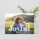 Trendy Joyful Red and White Swirls Photo Christmas Greeting Card.