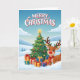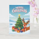 Celebrate the magic of the season with this charming Christmas greeting card featuring a cheerful reindeer, a festive Christmas tree, and beautifully wrapped presents nestled in a snowy winter landscape. The bright colors, playful illustration style, and heartwarming holiday scene make this the perfect card for kids, families, friends, teachers, and anyone who loves a touch of Christmas cheer.