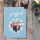 Joyful Script Blue Snowflake Frame Photo Holiday Card