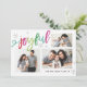 Spread cheer this year with this bright and festive holiday card. Featuring 3 of your photos with modern brush script that says "Joyful" in bright holiday colours accented by hand drawn snowflakes. Comes with a matching pattern on the back.