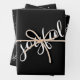 Joyful Script Snowflake Black and White Holiday Wrapping Paper Sheet
