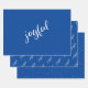 Joyful Script Snowflake Blue and White Holiday Wrapping Paper Sheet