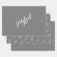 Joyful Script Snowflake Simple Grey Holiday Wrapping Paper Sheets. Trendy white script and snowflakes on a grey background.