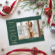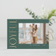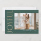 Modern, minimal holiday photo card featuring one large photo on a dark green background. Vertical faux gold lettering reads Joyful in a modern font. The back of the card features a second personal greeting along with your names.