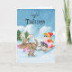 Give the gift of laughter this season with this whimsical and humourous Christmas Card. This design features a little girl sledding in a snowy landscape with her dog dressed up as a reindeer.