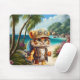 Joyful Tiger Cub with Backpack and coffee Mouse Mat