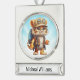 Joyful Tiger Cub with Backpack and coffee Silver Plated Banner Ornament