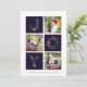 Share holiday greetings with these photo Christmas cards featuring three of your favourite square photos in a gridded layout, alternating with "JOY" in festive typography formed with Christmas botanicals and holiday flowers. Add your family name or names and the year along the bottom. Cards reverse to a matching holiday botanical pattern on deep midnight blue.