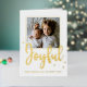 Joyful Typography Script Modern Photo Christmas Foil Holiday Card
